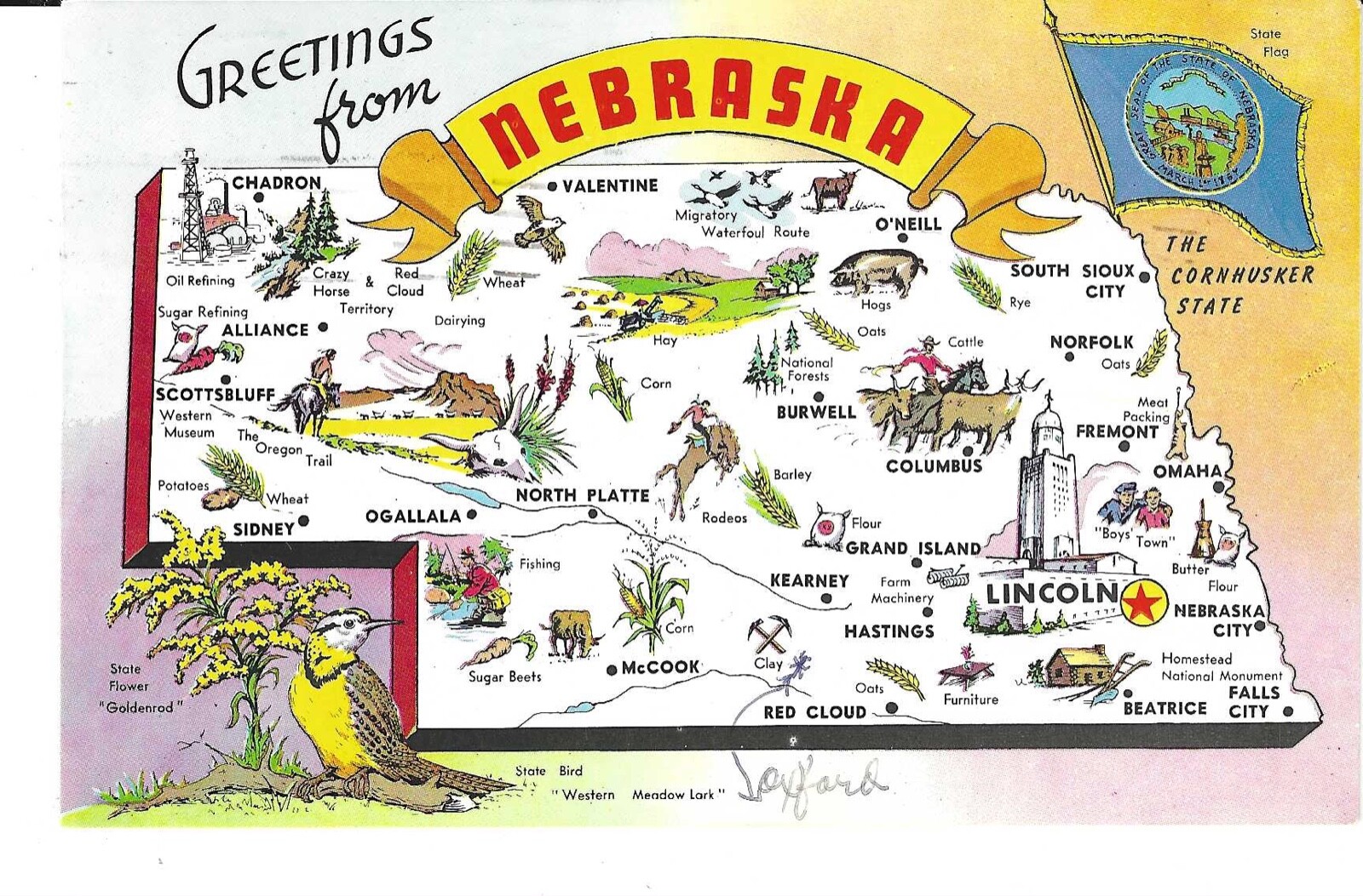 POSTCARD “GREETINGS FROM NEBRASKA” TOURIST ATTRACTIONS MAP | eBay